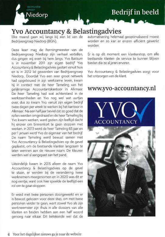 In de maand oktober 2021 was dit het bedrijf van ons bestuurslid Yvo Accountancy & Belastingadvies.