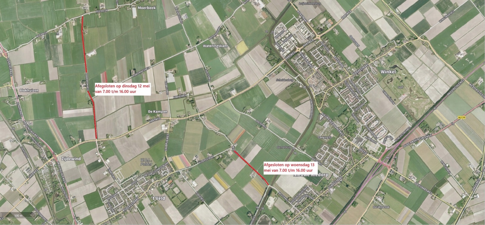 Ten tijde van de werkzaamheden zijn de wegen voor al het doorgaande verkeer afgesloten, aanwonende/perceeleigenaren hebben met enige vertraging toegang.