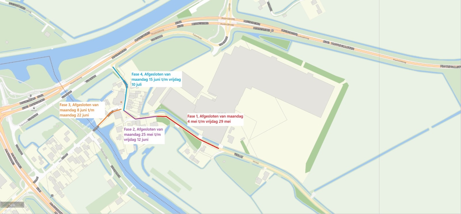 Ten tijde van de werkzaamheden zijn de fases voor al het doorgaande verkeer afgesloten, aanwonende/perceeleigenaren hebben met enige vertraging toegang. Hulpdiensten hebben ten tijde van de werkzaamheden in de Fases geen doorgang!